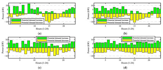 Potential increase/decrease in ESS power for ASs: (a) Case 1; (b) Case 2; (c) Case 3; (d) Case 4.