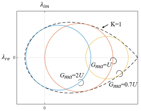 Here, we only consider the unconditional stable (K > 1). Because U is invariant, can be boosted with the change in . In fact, given U and , (7) can be represented as a circle. The -circle will draw on -plane. The function of the -circle is shown in (8).