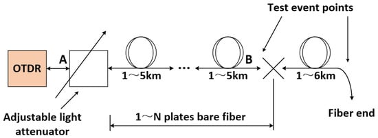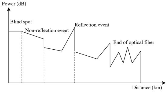OTDR uses Rayleigh scattering and Fresnel reflection to characterize optical properties [,]. When light is transmitted in an optical fiber, Rayleigh scattering is caused by the slight fluctuation of the refractive index of fiber, while Fresnel reflection is caused by the abrupt change in the refractive index at the end face or fault point of fiber, which is a discrete reflection. Notably, Rayleigh scattering is determined by the properties of the fiber material itself, while Fresnel reflection is related to the actual operation and state of each fiber, and reflects the “point” event on the fiber.