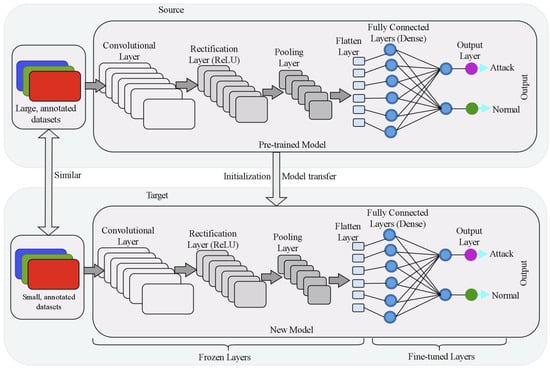 - Xu, Y.; Liu, Z.; Li, Y.; Zheng, Y.; Hou, H.; Gao, M.; Song, Y.; Xin, Y. Intrusion Detection Based on Fusing Deep Neural Networks and Transfer Learning. In Digital TV and Wireless Multimedia Communication; Zhai, G., Zhou, J., Yang, H., An, P., Yang, X., Eds.; Communications in Computer and Information Science; Springer: Singapore, 2020; Volume 1181, pp. 212–223. ISBN 9789811533402. [Google Scholar]