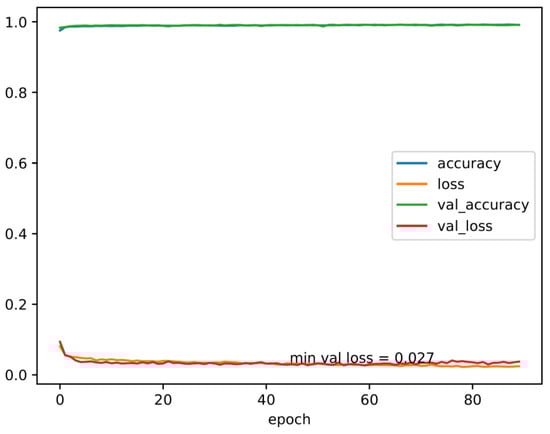 False negative rate (FNR) is another metric that measures the proportion of positive samples that are incorrectly classified as negative. FNR is calculated using Equation (1) and our model scores a low FNR value of 0.002.