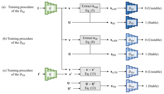 where , , and are factors for balancing between each loss term. Thus, the loss function in Equation (15) is used to train the IDD, EDD, and TDD.