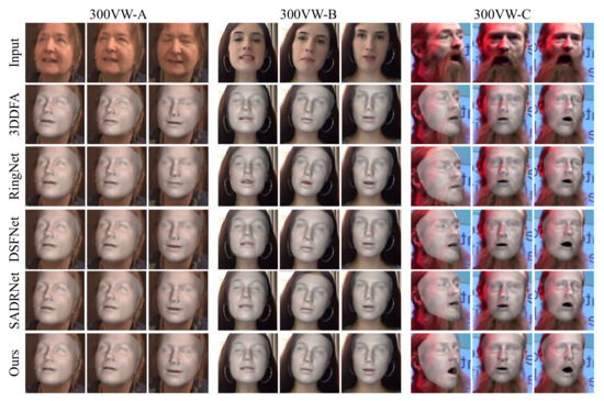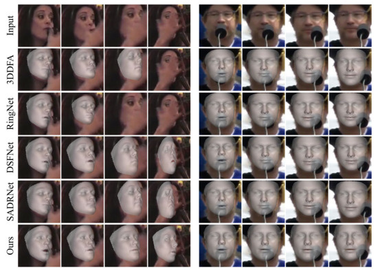 - Ruan, Z.; Zou, C.; Wu, L.; Wu, G.; Wang, L. Sadrnet: Self-aligned dual face regression networks for robust 3d dense face alignment and reconstruction. IEEE Trans. Image Process. 2021, 30, 5793–5806. [Google Scholar] [CrossRef] [PubMed]