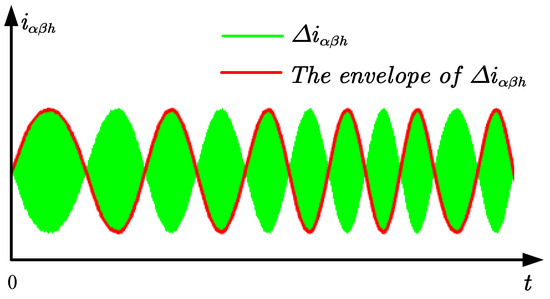 where k represents the timing of current adoption. After that, the rotor position information can be effectively obtained by extracting the envelope curve of the high-frequency response current (), which is shown in Figure 2. Note that the fundamental frequency and high-frequency response signal exhibit similarity in high-speed scenarios such that the signal separation method is not applicable.