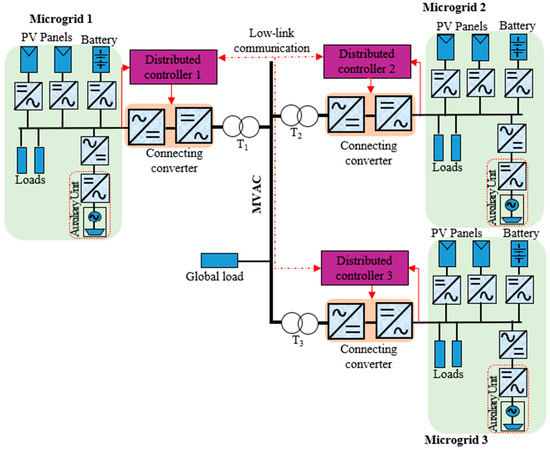 The proposed structure of multiple standalone interconnected AC microgrids is represented in Figure 1. At the local microgrid level, when the microgrids are not interconnected, it functions as follows: