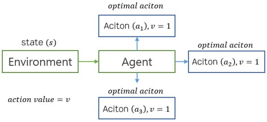 The soft actor critic (SAC) method [29] is a robust approach that allows for the observation of multiple optimal values while avoiding the selection of impractical paths. This facilitates a more extensive policy exploration. The SAC employs an efficient and stable entropy framework for the continuous state and action space. As delineated in Equation (10) with SAC [29], the SAC learns the optimal Q function through updating Q-learning via the maximum entropy RL method.