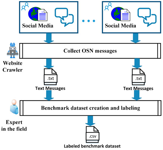 A message could match multiple classes, i.e., to be both aggressive and toxic, or insulting, aggressive, and toxic at the same time. The generic dataset creation process is depicted in Figure 1.