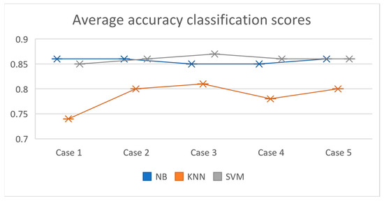A graphical representation of the average accuracy classification scores is depicted in Figure 8.