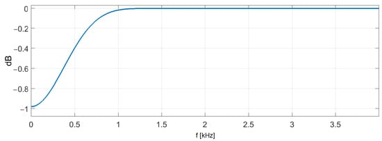 The next step in the pre-processing of the speech signal is filtering in the frequency domain to reduce the components of the sound that are inaudible to humans. For this purpose, a high-pass filter with the amplitude characteristics shown in Figure 3 was used. The filter parameters were selected through an optimization process.