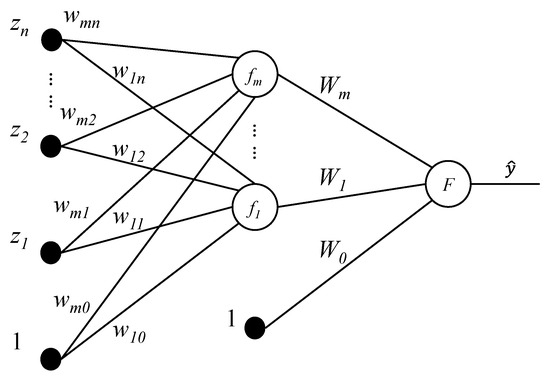 As the number of hidden neurons is set to 12 according to an empirical technique [36], the MLP system used to score shelf cluster can be expressed in the form of Equation (5) as