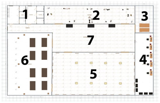 - MMMA—Planner 5D. Available online: https://planner5d.com/v?key=ea74afb24ba2f7af46509dbce0a9a412&viewMode=2d (accessed on 19 July 2023).