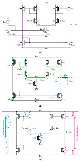 Telescopic and folded cascode OTAs are employed to increase the rout, thus achieving a high Ao. However, as a trade-off, the output swing ranges of these two OTAs and one of the performance metrics related to speed, ωGB, are limited due to the cascode output stages. Furthermore, another performance metric related to speed, SR, is also limited by the magnitude of the input bias current.