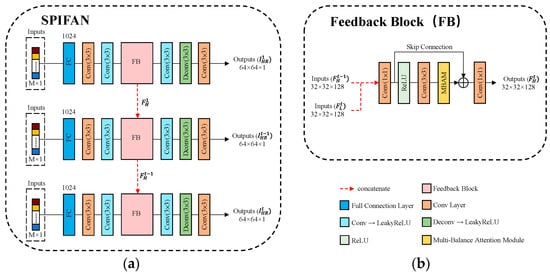 (a) Overall network structure of SPIFAN; (b) structure of the feedback module in SPIFAN.