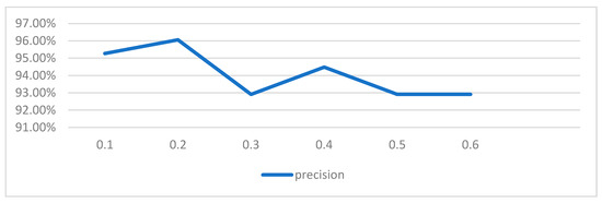 The denoising autoencoder network incorporates specific parameters to regulate the random concealment of a portion of the input data and then determines the nodes responsible for reconstructing the input data [43]. In the experiment, at a noise rate of 0.6, 60% of the input data is randomly obscured, with 40% of the nodes engaged in data reconstruction. Typically, the proportion of hidden input segments is kept below 0.5. As shown in Figure 8, the network performance is optimized when the noise rate is set to 0.2.
