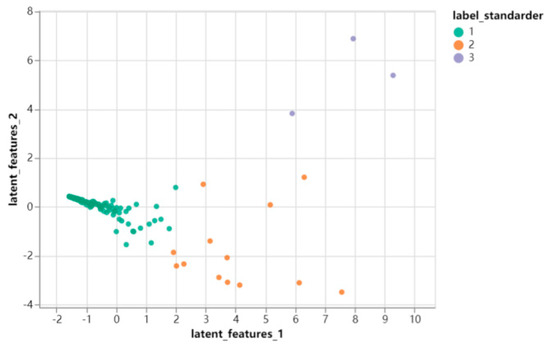 Employ the K-means++ method to cluster the derived latent features, classifying them into three distinct categories. The clustering results of the comprehensive loss levels of flood disasters in Henan Province are shown in Figure 9.
