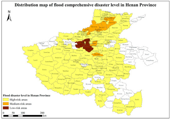 Distribution map of comprehensive loss level of flood disasters in Henan Province.