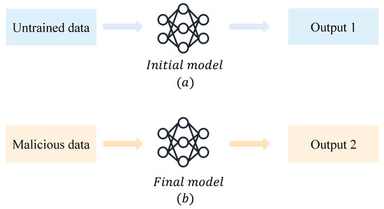 As shown in Figure 1a, is trained on , and the untrained data (e.g., ) have little or no influence on . As in Figure 1b, after model strengthening, the malicious data should be removed from the final model . This means that has little or no impact on . In practice, these two items should be almost equivalent. In other words, after removing malicious data, the model output of untrained data with respect to the initial model (i.e., should be almost equivalent to the model output of malicious data with respect to the final model (i.e., , satisfying .