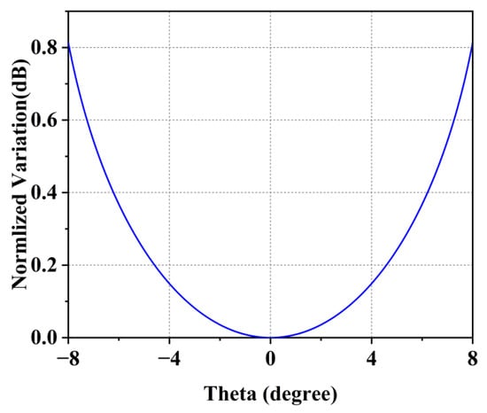 According to Equation (6), using H = 36,000 km for geostationary satellites, Figure 3 shows the normalized space loss variation within .