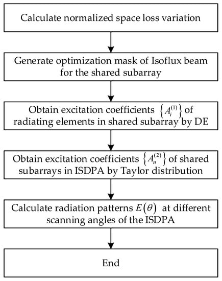 - Obtain the excitation coefficients of shared subarrays in the ISDPA by using the Taylor distribution or other methods according to the sidelobe requirements of the ISDPA.