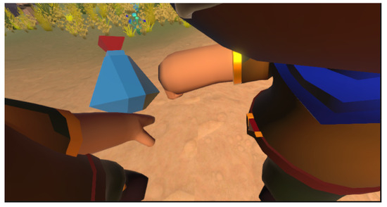 To achieve the connection between the virtual and physical worlds, the story that is presented to the child includes two key moments. In the first one, the magician touches the hero with an elixir (see Figure 5), and in the second one, the magician touches the hero again to bestow magical powers upon them.