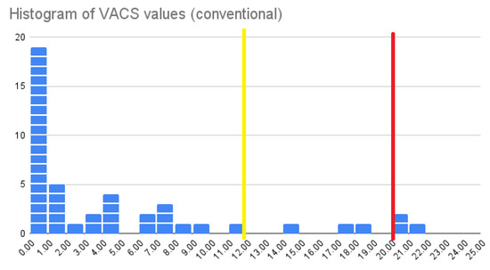 Histogram of VACS values for the conventional vaccination approach.