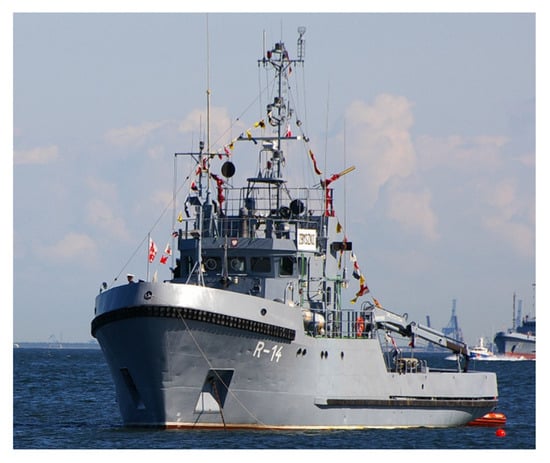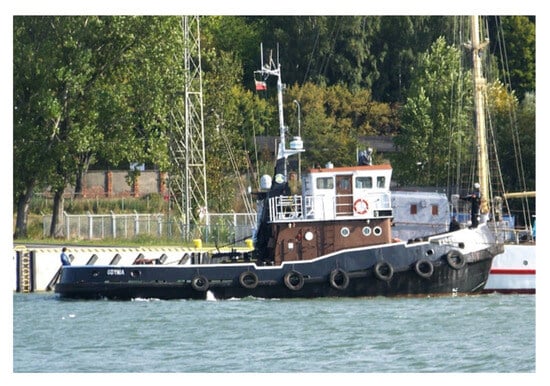 The research object was the Sulzer 6AL20/24 marine engine produced by Zakłady Przemysłu Metalowego (ZPM) H.Cegielski in Poznań, Poland. Most of these engines work as auxiliary power generators on ships, while some are used as a stationary power source (especially popular in India, as recovered from scrapped ships and rebuilt), and many are employed as the main propulsion in tugs, floating cranes, fishing ships, and other workboats. In Poland, this type of engine is often used in civil (Figure 3) and navy (Figure 4) vessels.