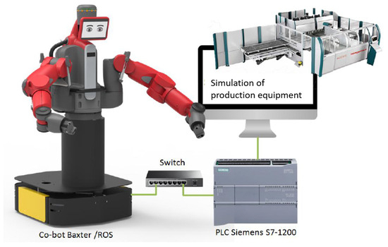 For the implementation of cobots in production systems and their cooperation with production equipment, it is necessary to create a communication channel, the design of which is part of this case study. The design and solution will result in the interfacing of the Robot Operating System with the production facility control systems (PLCs) (Figure 2).