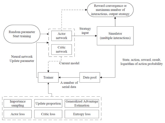 - The updated strategy is to be input into the simulator for interaction again. Loop this process until the reward converges or reaches a pre-coded maximum number of interactions, and output the action network.