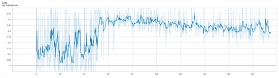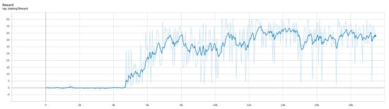 After 18,000 epochs of continuous training under the simulator, the algorithm returns converged and the training is stopped. The total time is 16 h, 42 min, and 59 s. In the training process, the changes in Loss and Reward are shown in Figure 7 and Figure 8.