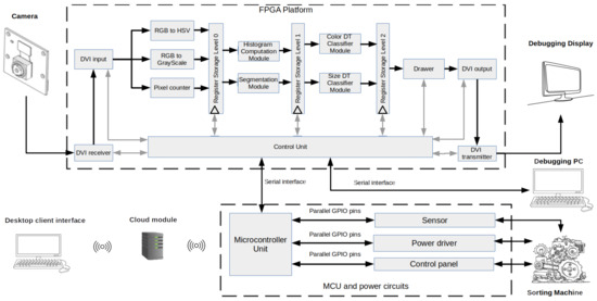 - PC. We use this component to analyze, develop, deploy, test, and configure the FPGA-based citrus sorting system. However, it is not part of the final system.