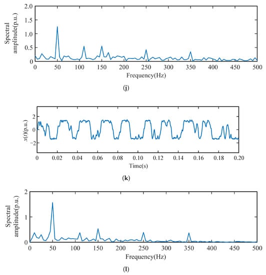 An inter-harmonic detection method based on the SST (synchrosqueezing wavelet transform) was proposed in the literature [6], realizing mixed harmonic signal detection with a relatively low number of errors in environments with a sufficient signal-to-noise ratio. However, in noisy environments with a negative signal-to-noise ratio, the detection accuracy of this method is significantly reduced. A power system harmonic detection method based on the fractional wavelet transform was proposed in the literature [7]. In environments with less noise, the relative error is small and weak harmonic amplitude detection is realized, improving the detection accuracy to a certain extent. However, when processing the signal itself, signal details will inevitably be lost, eliminating detection errors will become difficult and signal details will gradually increase with an increase in noise; thus, it is difficult to apply in highly noisy environments.