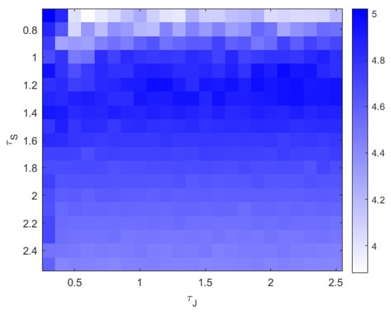 Table 2 presents the results of the average utility of the transmitter and the jammers in the scheme based on the HL algorithm with different values of and . The results show, when the values are small, such as and , that the utility of both the transmitter and the jammers fluctuates significantly, where fluctuates between and 5 in ten experiments, indicating that the performance of the HL-based scheme is not stable when the parameters and are small. When the values of and are large, such as and , the average utility of S and the jammers remains stable in ten experiments. Nonetheless, it is questionable that the stable utility values of S and the jammers are good enough.