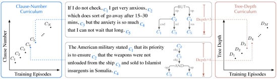 Inspired by the idea of curriculum learning [55], which suggests that humans handle difficult tasks from easy examples to hard ones, we propose an HCA-CL approach for training an AMR parser, in which the clause number and the tree depth of a sentence’s HCA are the measurements of learning difficulty. Referring to the previous work of Wang et al. [18], we set two learning curricula, Clause-Number and Tree-Depth, in our HCA-CL approach demonstrated in Figure 4.