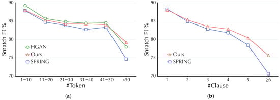 Abstract meaning representation (AMR) parsing [12], or translating a sentence to a directed acyclic semantic graph with relations among abstract concepts, has made strides in counteracting LDDs in different approaches. In terms of transition-based strategies, Peng et al. [13] propose a cache system to predict arcs between distant words. In graph-based methods, Cai and Lam [14] present a graph ↔ sequence iterative inference to overcome inherent defects of the one-pass prediction process in parsing long sentences. In seq2seq-based approaches, Bevilacqua et al. [15] employ the Transformer-based pre-trained language model, BART [16], to address LDDs in long sentences. Among these categories, seq2seq-based approaches have become mainstream, and recent parsers [17,18,19,20] employ the seq2seq architecture with the popular codebase SPRING [15], achieving better performance. Notably, HGAN [20] integrates token-level features, syntactic dependencies (SDP), and SRL with heterogeneous graph neural networks and has become the state-of-the-art (SOTA) in terms of removing extra silver training data, graph-categorization, and ensemble methods.