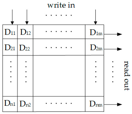 Another key module of the proposed pre-interleaver is register-based memory, which plays a role in discretizing data errors for easy correction. The degree of discretization completely depends on its interleaving depth and interleaving width. However, although their increase is very helpful for weakening the correlation between adjacent burst errors, it is a challenge in terms of complexity, consumption and transmission latency [23]. Another challenge is its architecture, e.g., a chip-selecting structure in which there are two identical memories and one works alternately with the other [24]. However, its main drawbacks are complexity and consumption. To overcome these problems, a handshake-based structure is proposed and achieves the alternating operation of single memory using a handshake signal. Further, considering the transmission latency and interconnect relationship between the generator and memory, a row–column interleaver with the handshake mechanism is employed to realize error discretization by means of the ping-pong method, as shown in Figure 12. Its depth (n) and width (m) are 32 and 40, respectively.