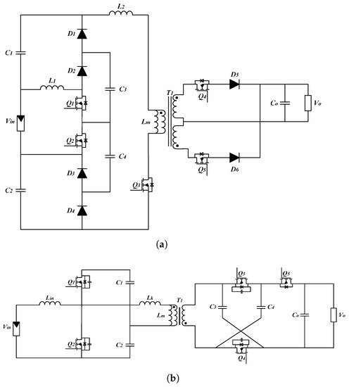 VMC Circuits. (a) Isolated high-step-up topology with VLs (), and (b) isolated high step-up topology with VMs ().