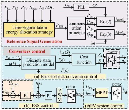 In the reference signal generation layer, a time-segmentation energy allocation strategy is proposed to solve the multidirectional energy flow brought by PV systems and ESSs, as well as to reduce the maximum power demand.