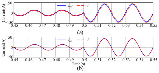 The output current waveforms of VSCα with different control. (a) Conventional model predictive current control; (b) proposed dual-vector model predictive current control.
