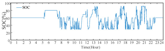 Figure 13 shows the instantaneous SOC of the ESS. The SOC does not exceed the limit and can be restored to SOC0 during the alternation of the day cycle, ensuring ESS state consistency.