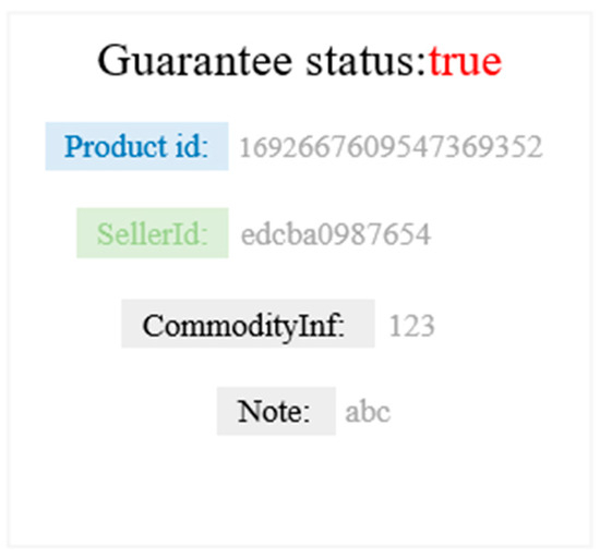 This includes detailed information about the product and the guarantee of the product. If the transaction fails due to the seller, the seller will be punished. The displayed commodity information is shown in Figure 4. The product information is created by the administrator after review, and then the seller sets the price. When the guarantee status is true, it indicates that the product can be traded.