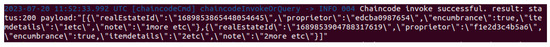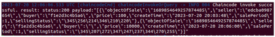 In terms of testing the functionality of the contract, the buyer calls the contract to query the detailed information on the item. The contract’s feedback result is shown in Figure 7. From the contract feedback result, it can be known that there are currently two items that have completed their registration in the system, and they are still unregistered. The status of the transaction and buyer columns are empty, and you can view detailed information such as the seller and the guarantee status of the item. Encumbrance means that the item has passed the seller’s guarantee and can be traded. After the transaction is over, regardless of arbitration, the storage of transaction records is very important. Figure 8 shows the storage results of the transaction records.