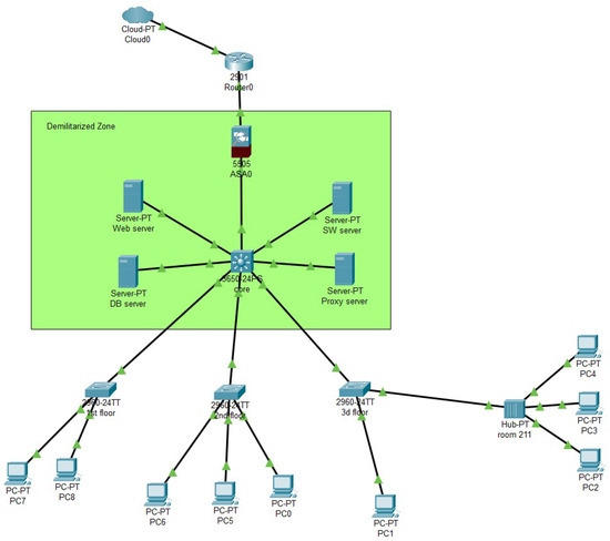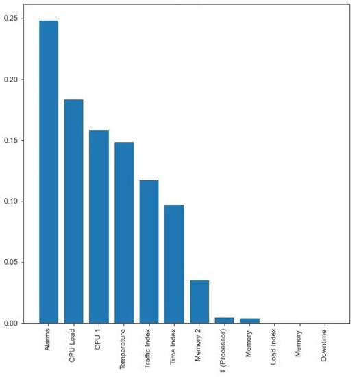 - Monitoring rule creation: Setting up monitoring rules allows determining which data need to be collected from each device within the network. In other words, the final training dataset consisted of feature matrix indicators collected by the monitoring system: CPU load, memory usage, temperature of network equipment components, network traffic, number of alarms, packet loss, and equipment availability. A binary vector of acceptable responses was created with a breakdown classification equal to 1 for normal equipment operation and equal to 0 otherwise.