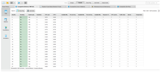 - Percentage of available memory for Processor 2: This variable indicates the percentage of available memory for Processor 2 as a fraction of 100%. The data are recorded in a percentage format. For example, a value of “43%” signifies that 43% of the processor’s memory is available for task execution. During the data cleansing phase, the percentage symbol was removed due to incompatibilities with the predictive model.