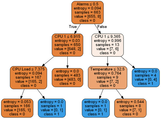 - Feature selection: The decision tree algorithm begins by selecting the most relevant features (network parameters) from the dataset. These features are chosen based on their ability to discriminate between LAN failure instances and non-failure instances.