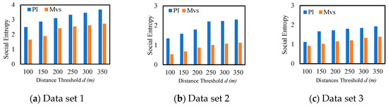 Figure 7. Social entropy evaluation with different spatial distance thresholds.
