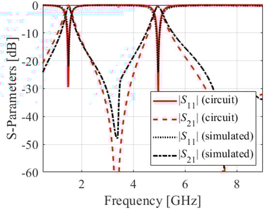 - Li, D.; Yu, Y.; Tang, M.C.; Shi, T. Design of compact wideband bandpass filter with broad stopband using hybrid HMSIW and open-circuit tri-section stepped impedance resonators. Microw. Opt. Technol. Lett. 2018, 60, 2998–3003. [Google Scholar] [CrossRef]