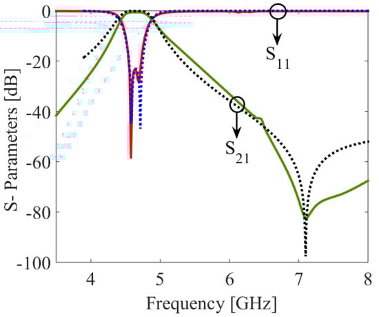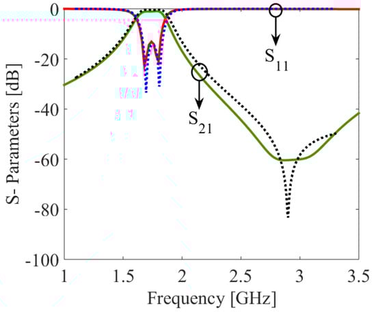 - Hong, J.S.; Lancaster, M.J. Microstrip Filters for RF/Microwave Applications; John Wiley & Sons: Hoboken, NJ, USA, 2004. [Google Scholar]
