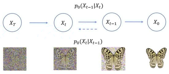 The diffusion model is a probabilistic modeling approach used to generate images. This model encompasses the modeling of an image’s probability distribution, enabling new images to be created using this framework []. The diffusion model leverages a probabilistic approach that has the advantage of yielding diverse outcomes during image generation. In addition, owing to its ability to reuse learned information during the image-generation process, the diffusion model enhances the efficiency of image synthesis.