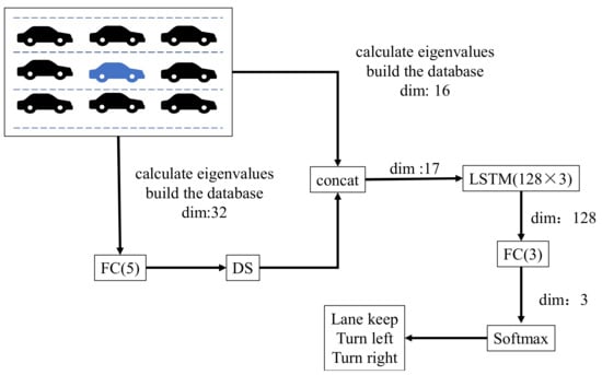 Classical machine learning-based approaches perform trajectory prediction through a data-driven methodology. Liu et al. [13] utilized an integrated approach that combined low-level and high-level vehicle information with the driver characteristic and intention estimation (DCIE) model and the Gaussian Process (GP) model. This approach was tested and analyzed in a highway lane-changing scenario. Feng et al. [14] analyzed vehicle lateral motion trajectory based on the Next-Generation Simulation (NGSIM) dataset, optimized through combining a lane shift recognition model with 97% accuracy using the support vector machine’s nonlinear learning and pattern recognition capabilities. Gao et al. [15] utilized a hidden Markov model to construct a maneuver recognition model for ensuring long-term prediction accuracy, validating the prediction model with real vehicle tests. Jiang et al. [16] proposed a probabilistic vehicle trajectory prediction method based on a Dynamic Bayesian Network (DBN) model that integrates the driver’s intent, maneuver behavior, and vehicle dynamics, achieving accurate long-term trajectory prediction in both lane-keeping and lane-changing scenarios. Yet, most classical machine learning methods require strategies and methods to provide or identify predicted trajectories in advance, and struggle to manage complex environments effectively.
