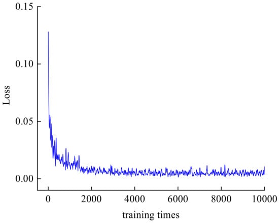 Before executing long-term predictions, a pre-training model for short-term predictions needs to be trained first. The loss function used in this case is the root mean squared error (RMSE). For long-term predictions, the loss function used is a combination of RMSE and negative log-likelihood loss (NLL). During training, the model parameters are updated at each epoch and saved in the ‘net.pkl’ file, with an average calculated every 5 batches. The variation of the training loss value with training steps is illustrated in Figure 3. As can be observed from the figure, the loss value gradually decreases with the increase in the number of training iterations and basically stabilizes after approximately 3000 training steps.